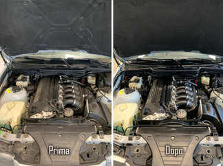 dopo soffiatura/sabbiatura e aspirazione delle moquette, plastiche e pelle sono state pulite, reidratate e protette.. anche la radica necessitava di cure, è stata quindi "rianimata" tramite lucidatura, rimuovendo così buona parte dei difetti e aumentandone notevolmente i riflessi.